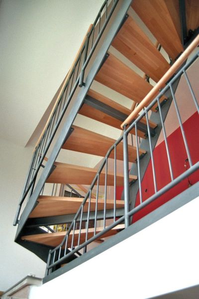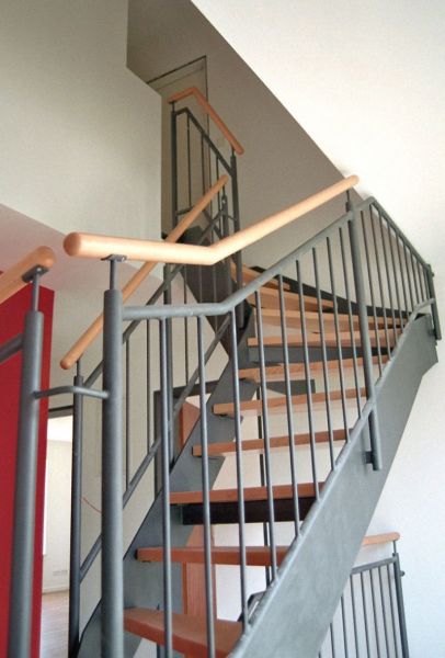Um zusätzlichen Platz zu schaffen, wird das Dachgeschoss ausgebaut und durch eine neue Stahlwangentreppe erschlossen. Im Dachgeschoss werden Schlafzimmer mit Ankleide und Bad sowie eine Arbeitsecke für die Eltern geschaffen so dass das 1.Obergeschoss mit drei Schlafräumen und Badezimmer komplett für die Kinder reserviert bleibt. In diesem Zuge werden auch die energetischen Aspekte der Sanierung in Angriff genommen, die Fassade des Hauses erhält ein Wärmedämm-Verbundsystem, der Dachstuhl wird mit Zwischensparrendämmung nach Anforderung der ENEV versehen. Die nach Süden zugewandte Dachfläche erhält Solarpaneele zur Warmwasserbereitung.